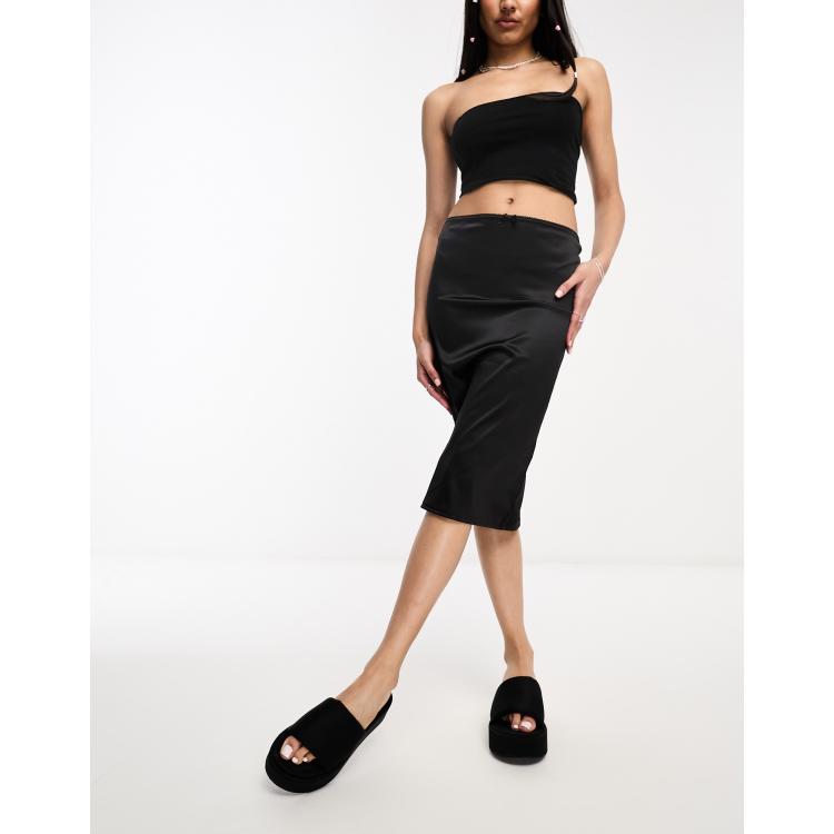 Black Satin Bias Cut Midi Skirt PrettyLittleThing Very well made.