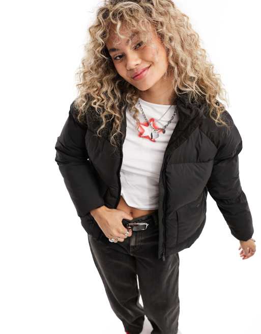 Selected short puffer jacket with oversized pockets in black Very well made.