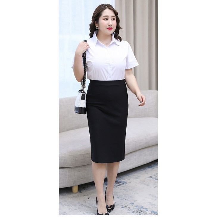Two Pieces Set Plus Size Short Sleeve Blouse with Pencil Cut Skirt Very well made.