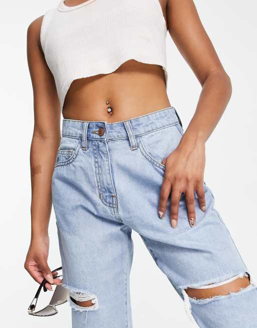 Parisian Petite boyfriend jeans with knee rips in light blue Very well made.