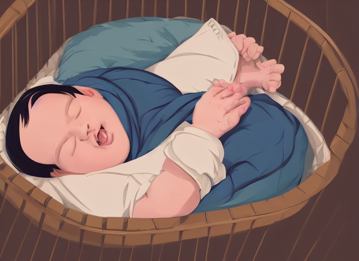 prompthunt a newborn baby sleeping in a crib. clean cel shaded Very well made.