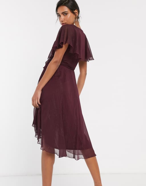 ASOS DESIGN cape back dipped hem midi dress in metallic stripe Very well made.
