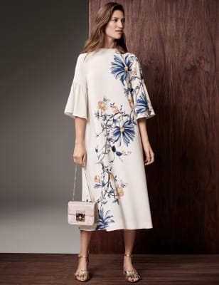 Marks and Spencer Silk Checked Tunic Midi Dress in Ivory Mix Very well made.