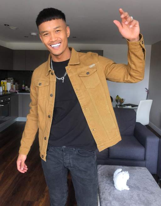Mens Denim Jean Jacket Button Up Slim Fit Premium Cotton Tan 3XL Very well made.