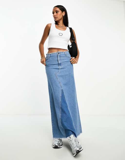 ASOS DESIGN Jupe longue l g re en jean fendue sur le devant Bleu Very well made.